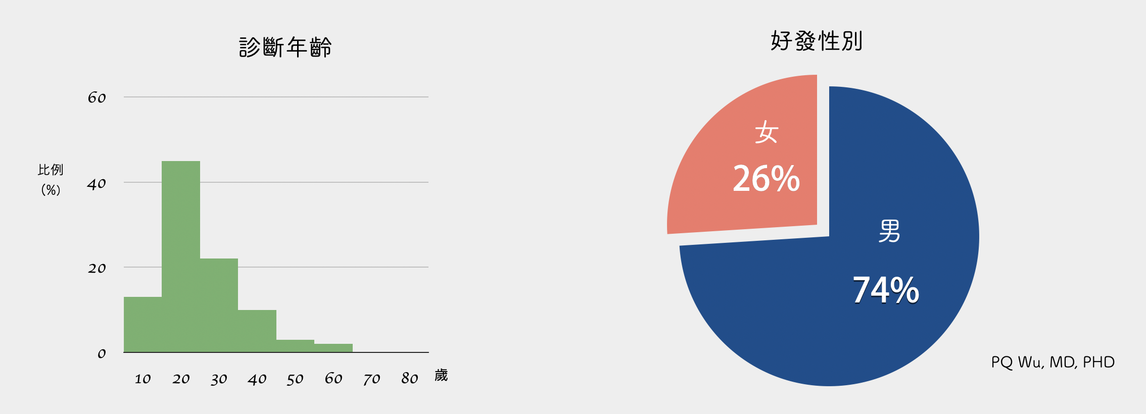 骨樣性骨瘤在男性發生的機會高許多,約佔75%。年齡多發生於10至30歲的青少年身上。