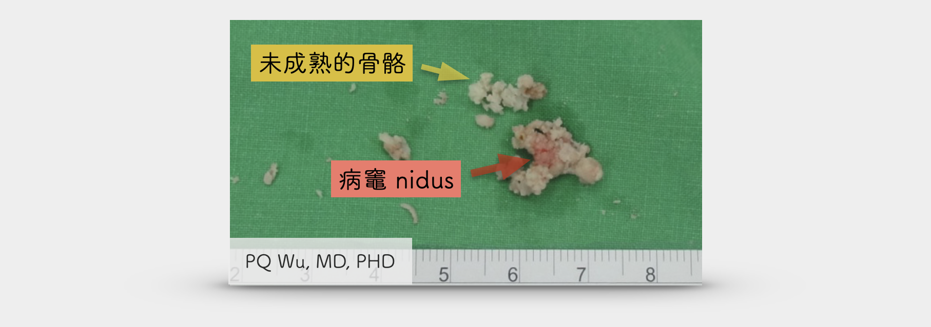 或是因為擔心破壞太多骨頭,所以沒有處理到真正的腫瘤。