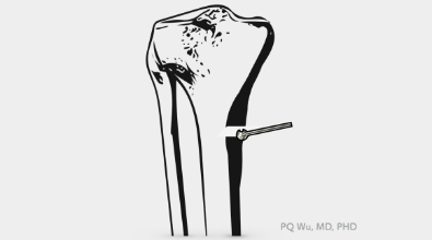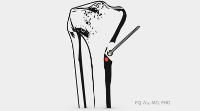 傳統的骨樣性骨瘤手術治療,相當的『用牛刀來殺雞』。這個怎麼說呢?因為骨樣性骨瘤真的非常的小,加上他又是躲在骨頭之中,因此手術中醫師根本無法見到腫瘤的正確位置,因此傳統上,醫師只好將整個骨頭大段的移除,造成較多的骨缺損,也因此病患恢復的較慢。或是另一種情況,因為醫師看不到腫瘤的位置,且擔心破壞太多骨頭,所以僅能磨掉懷疑之處,而造成腫瘤沒有處理到。